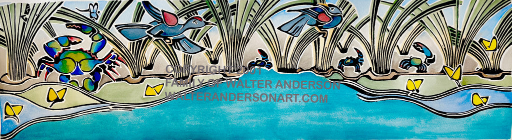 This Walter Anderson design is a partial print from Alligator in the Marsh Grass and depicts the luscious marsh grass habitat.